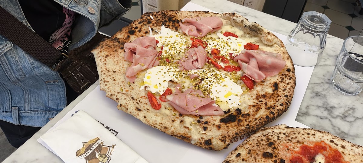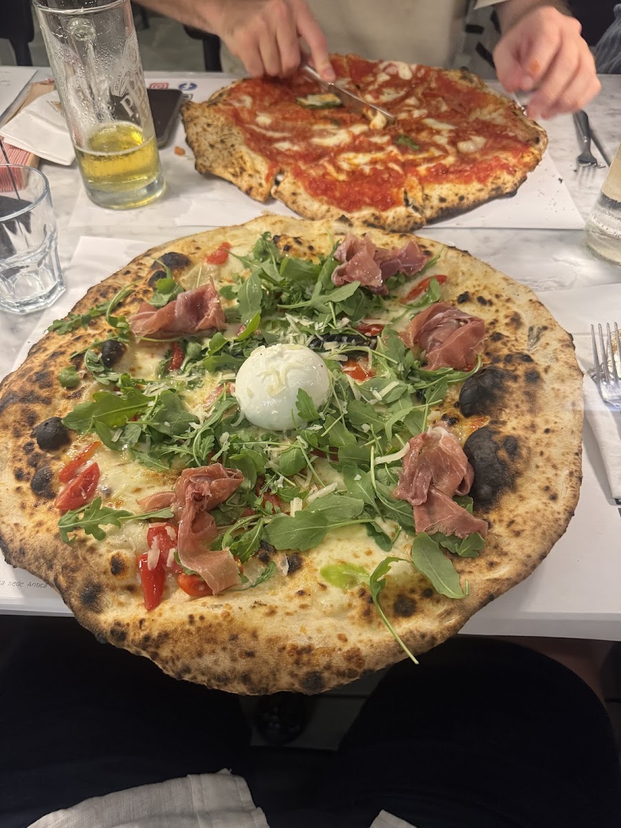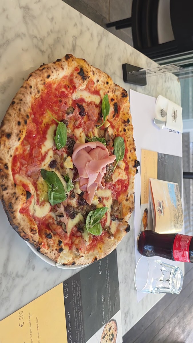 What’s the hype? Yes this is good pizza and maybe even perfect Napoli style, but I ate a better pizza literally the day before next to Pisa airport. My expectations were much higher after seeing 5000 ratings with an average of 4.8 Also what’s up with precutting the pizza at least a little bit before serving? It’s literally falling it of my plate. How am I supposed to cut it?